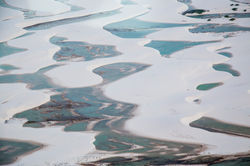 Dia 1 - Lagoa Azul - Os passeios às lagoas a partir de Barreirinhas começam atravessando o rio para a outra margem, em uma balsa. Depois 20 a 40 minutos de 4x4 por caminhos de areia com algumas partes alagadas. Então só resta descer do carro, e subir para dar de cara com uma espécie de deserto e entre uma duna e outra, grandes poças que nos recebem para banho. A Lagoa Azul é uma das mais fantásticas. E pôr do sol é indescritível.